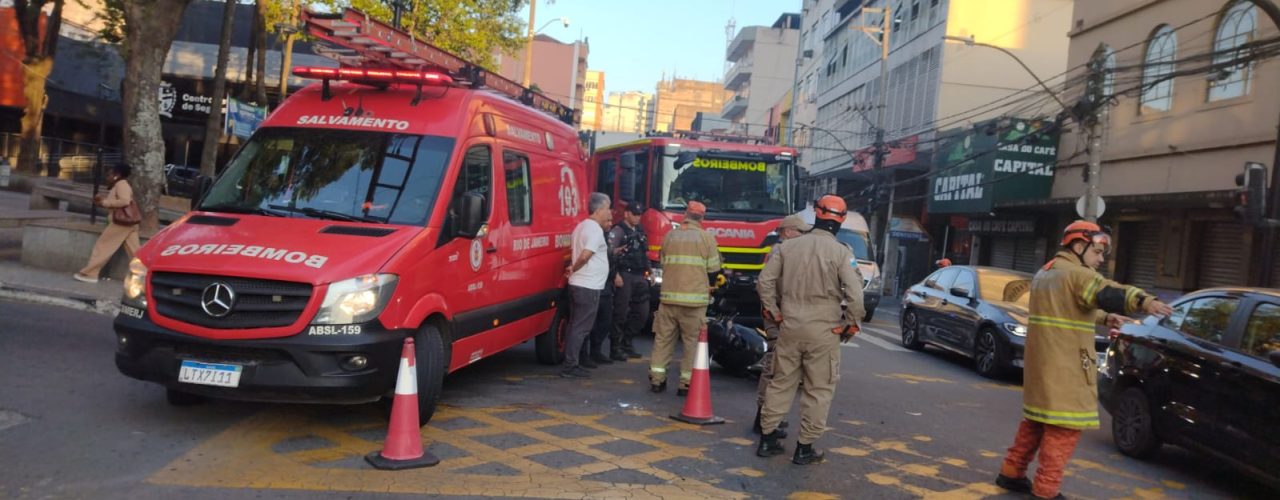 Acidente entre carro e moto mobiliza bombeiros no Centro de Barra Mansa