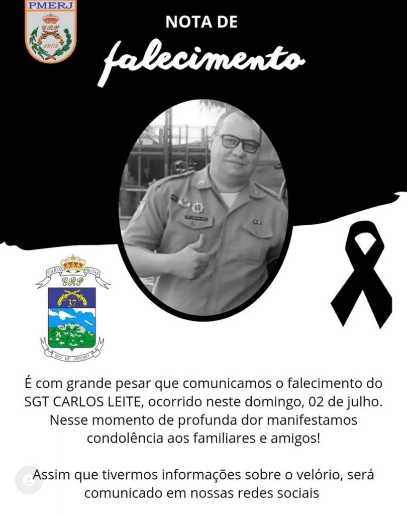 Nas redes sociais, o 37º BPM emitiu um comunicado sobre o falecimento do policial. “É com grande pesar que comunicamos o falecimento do sargento Carlos Leite, ocorrido neste domingo, 02 de julho. Nesse momento de profunda dor manifestamos nossas condolências aos familiares e amigos”, concluiu.