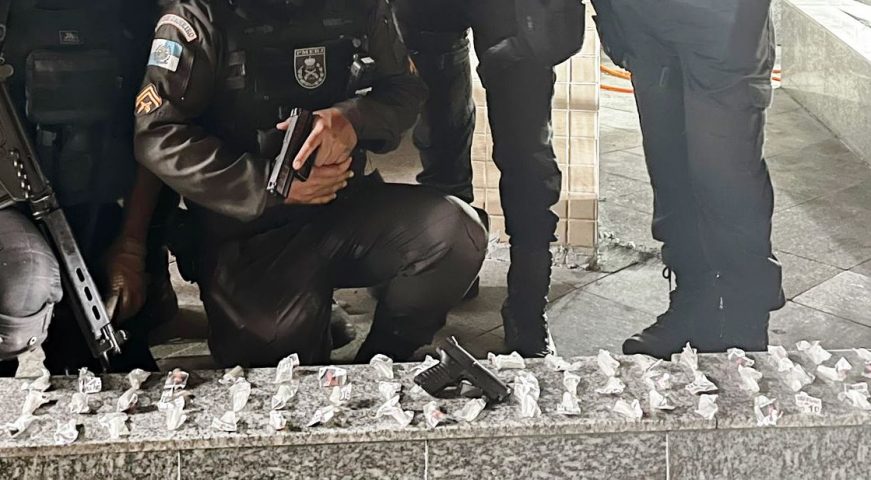 Um adolescente de 14 anos foi apreendido na noite da terça-feira (25), em Três Rios, por tráfico de drogas. Com ele a Polícia Militar apreendeu 64 pinos e um sacolé de cocaína e uma réplica de pistola.