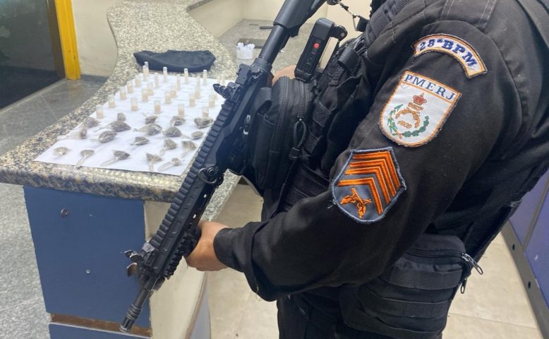 Ele havia acabado de vender dois pinos de cocaína a um usuário e correu ao perceber a aproximação do carro da PM. No local onde ele estava foram recolhidas 19 buchas de maconha e 27 pinos de cocaína.