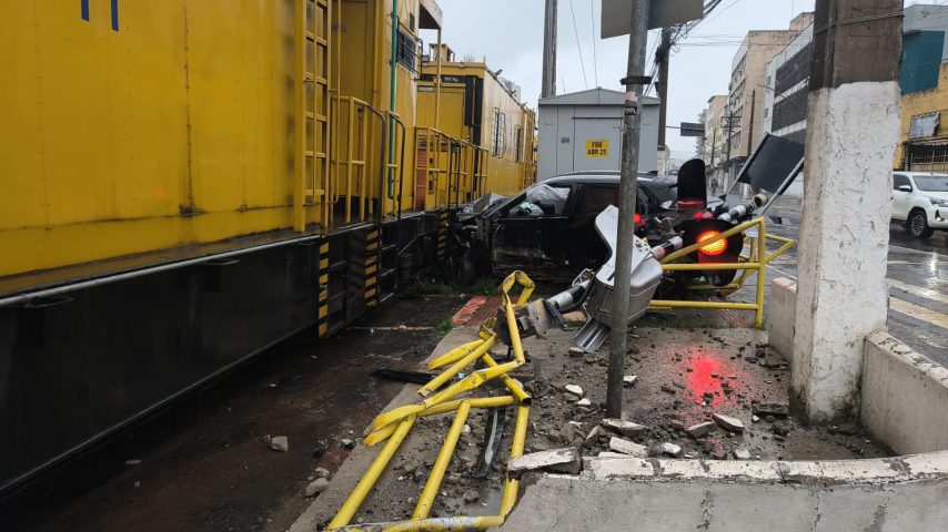 Após o trabalho pericial e a remoção do carro, a passagem será liberada. Este foi o segundo acidente na linha férrea registrado em Barra Mansa em menos de 24h. Na manhã da quinta-feira (22), um homem foi atingido por uma composição na passagem em nível da Rua Duque de Caxias, também no Centro. Ele foi socorrido na Santa Casa. (Foto de leitor)