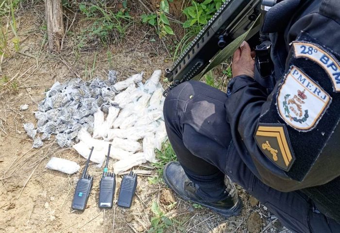Drogas e um rádio de comunicação de traficantes foram apreendidos, na manhã desta quarta-feira (5), em Barra Mansa. O material estava numa área de mata da Rua 9, no bairro Vila Nova.