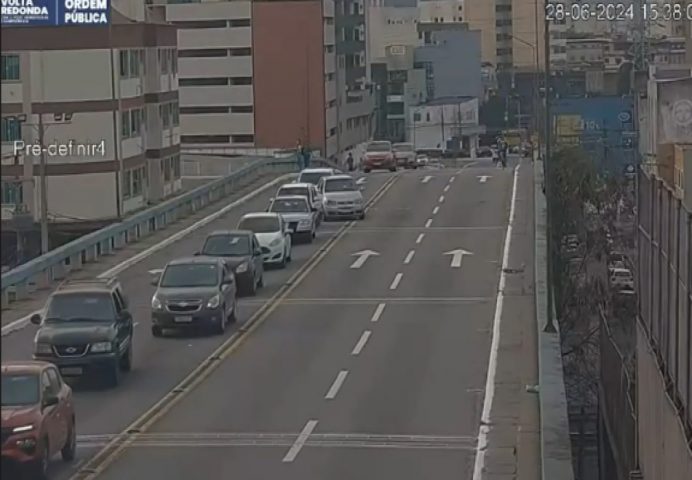Uma câmera da Secretaria de Ordem Pública de Volta Redonda flagrou, na tarde desta sexta-feira (28), um engavetamento no viaduto Heitor Leite Franco, que liga os bairros Aterrado e Colina.