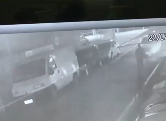 Uma câmera de segurança flagrou um atropelamento na noite desta quarta-feira (22), na Rua Laranjeiras, no Retiro, em Volta Redonda.