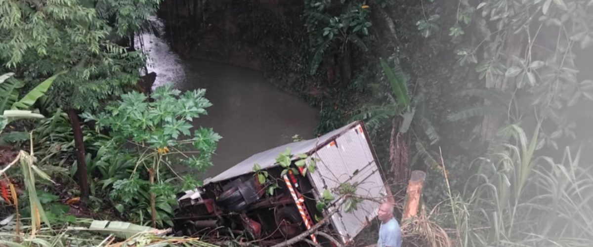 Caminhão cai em ribanceira na Santa Cruz, em Volta Redonda
