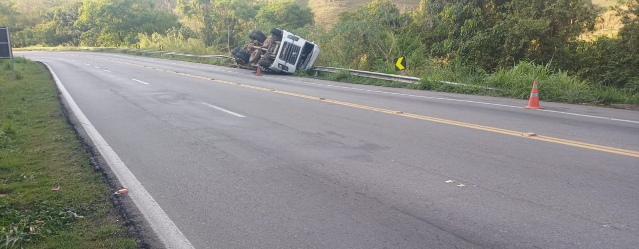 Caminhão com plásticos tomba na Curva do Aterrado, em Barra do Piraí