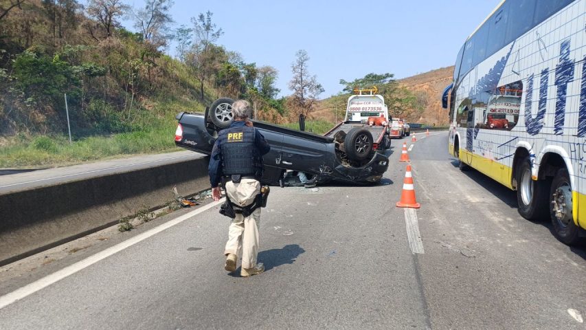 Uma caminhonete capotou na tarde desta segunda-feira (7) na Dutra, em Barra Mansa. O acidente aconteceu no km 284, na pista sentido Rio.