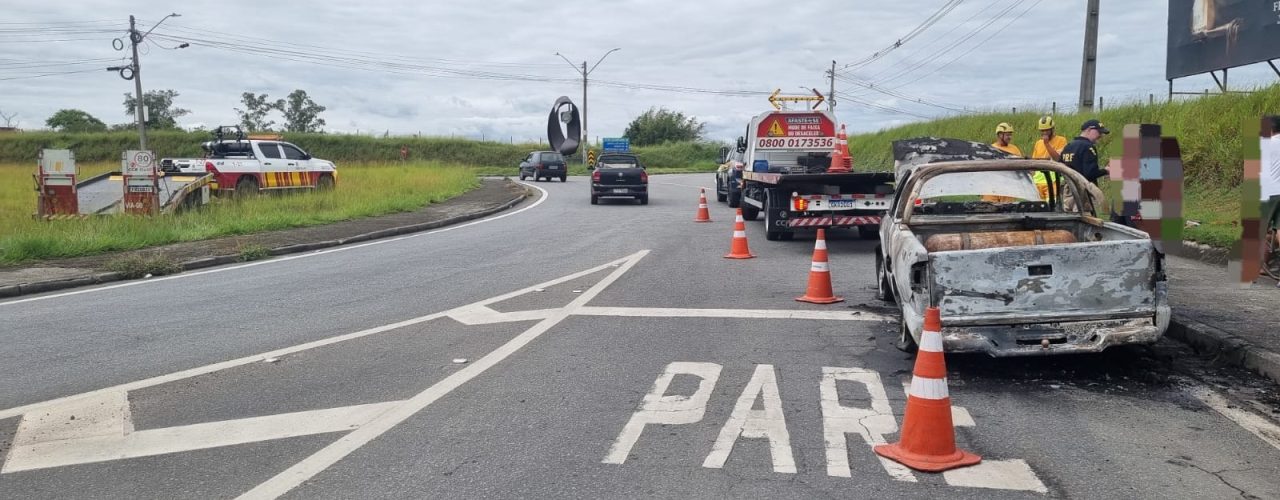 Caminhonete pega fogo na Dutra, em Itatiaia