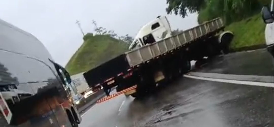 Carreta em “L” na Dutra, em Barra Mansa, interdita rodovia por mais de 4h