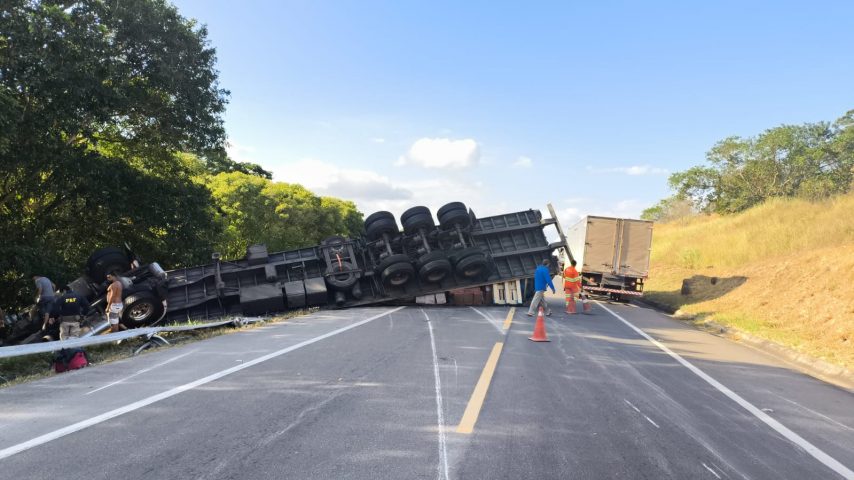 Também de acordo com a PRF, o acidente deixou um ferido leve. O trânsito estava sendo feito no sistema pare-siga no momento desta publicação.
