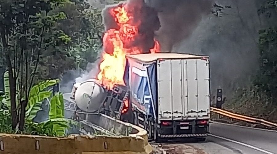 Uma carreta transportando combustível tombou, na tarde desta quarta-feira (3), na pista de descida da … Continue lendo Carreta tomba, pega fogo e é atingida por caminhão com cerveja na Serra das Araras