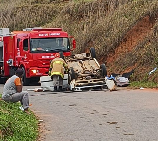 Um motorista de 28 anos ficou levemente ferido após o carro que ele conduzia capotar no fim da manhã desta segunda-feira (13) em Valença. O acidente aconteceu na Estrada da Passagem, no bairro Passagem.