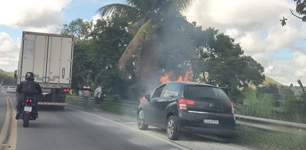 Carro pega fogo na BR-393, em Volta Redonda