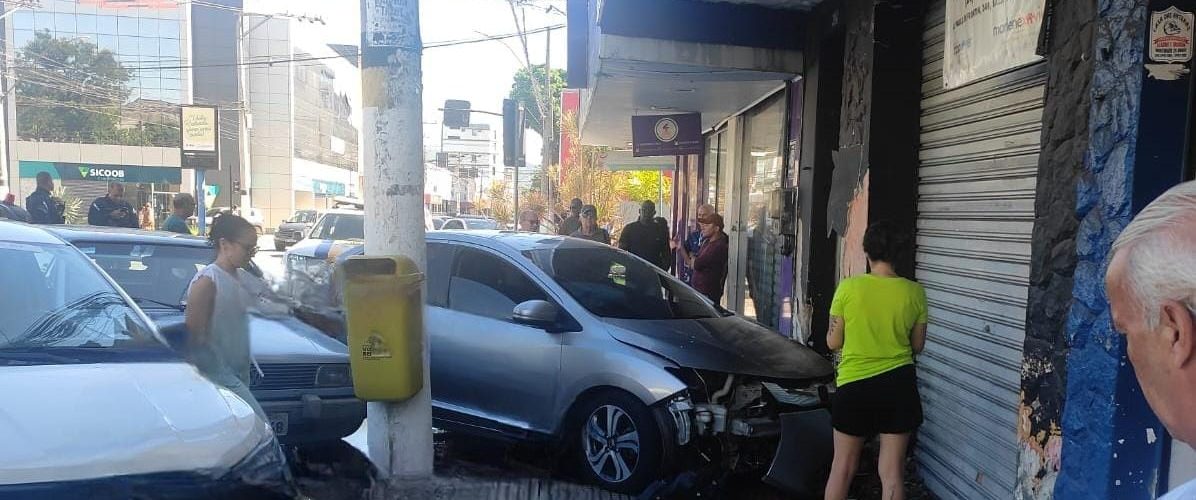 Carro sobe na calçada e atinge muro de loja no Aterrado