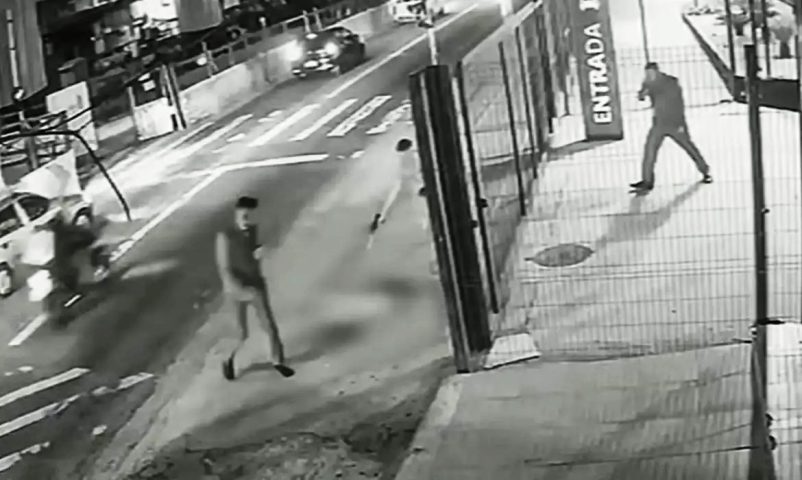 Um vídeo que foi parar nas redes sociais mostra um homem, num ponto de ônibus em São Paulo, disparando dez vezes contra um cachorro. O crime, segundo a polícia, aconteceu no último dia 18, mas as imagens só surgiram agora. Os disparos foram feitos na Avenida Ragueb Chohfi, na zona leste da capital paulista. O criminoso, que ainda não foi identificado, estava discutindo com uma mulher, o que deixou o cão agitado e latindo muito. De repente, o homem se vira para o animal e faz vários disparos com um revólver. Ele fugiu em seguida.