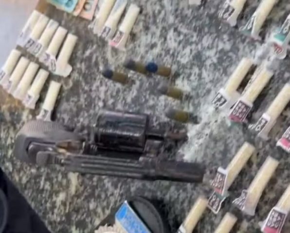 Segundo a Polícia Civil, no Mello Afonso, os agentes encontraram um revólver com numeração raspada, calibre .38, municiado com cinco cartuchos, além de uma sacola plástica contendo 82 cápsulas de cocaína. O material estava na casa de um homem, que foi preso.