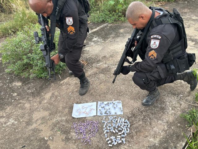 Os agentes em patrulhamento receberam informações de tráfico na Travessa Sebastião do Norte, mas no local, nenhum suspeito foi encontrado. No entanto, durante buscas, os policiais acabaram encontrando 153 pinos de cocaína, 75 pedras de crack e 32 trouxinhas de maconha.