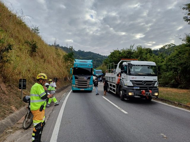 Uma colisão entre duas carretas na manhã desta sexta-feira (5) interditou a descida da Serra das Araras, em Piraí. O acidente foi na pista sentido Rio.