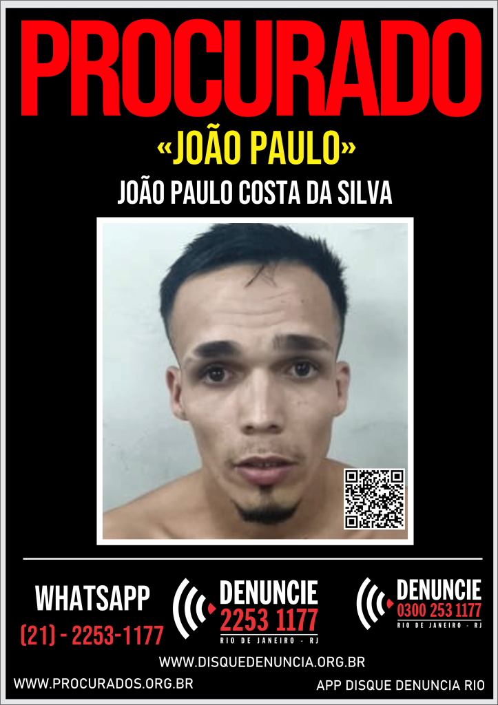 A Justiça deferiu um mandado de prisão temporária e mandado de busca e apreensão em seu endereço, no bairro Ilha das Cobras, por feminicídio, mas João Paulo não foi localizado. O Disque Denúncia, pede que quem tiver informações sobre a localização de João Paulo, favor entrar em contato pelos seguintes canais de atendimento: Central de atendimento/Call Center: (021) – 2253 1177 ou 0300-253-1177 WhatsApp Anonimizado: (021) – 2253-1177 (técnica de processamento de dados que remove ou modifica informações que possam identificar uma pessoa) Aplicativo: Disque Denúncia RJ Anonimato Garantido.