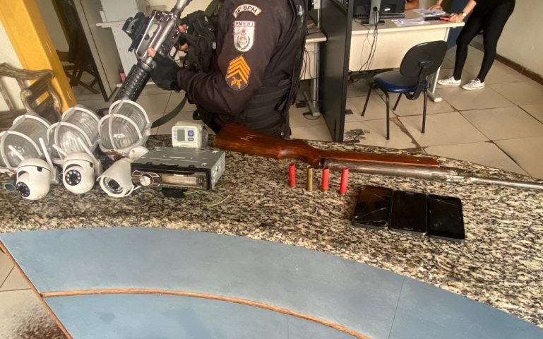 Os agentes chegaram até os suspeitos após denúncias de moradores dizendo que eles eram responsáveis pelos crimes e que estavam ameaçando as pessoas. Além da arma, foram apreendidos quatro cartuchos, três luminárias, três câmeras de monitoramento e três celulares.