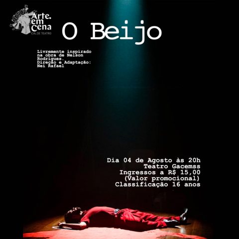 O espetáculo ‘O Beijo’ será realizado no próximo dia 4, às 20 horas, no Teatro Gacemss, em Volta Redonda. Realizado pela companhia Arte em Cena, a peça é inspirada livremente na obra de Nelson Rodrigues e tem a direção e adaptação de Nei Rafael. Os ingressos já estão a venda na secretaria do teatro com valor promocional de R$ 15,00. A classificação é de 16 anos.