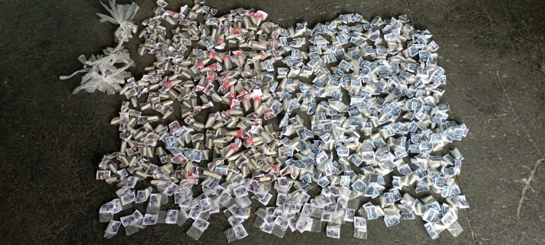Foram apreendidos 483 pinos de cocaína, 69 pedras de crack, 38 pedaços de maconha e 12 buchas de haxixe. O suspeito e as drogas foram levadas para a delegacia. (Foto: Polícia Militar)