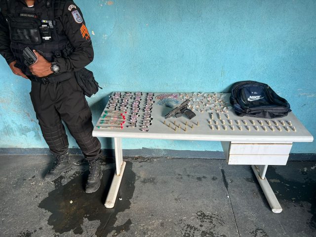 Foram apreendidos uma pistola, munições, cocaína e maconha. Em Barra Mansa, um jovem de 19 anos foi detido com drogas na tarde desta sexta-feira (14) no bairro Boa Vista. Os agentes chegaram até o suspeito após informações de que estava acontecendo venda de drogas na Viela Chico Mendes. Chegando, encontraram o suspeito com dinheiro e entorpecentes ainda não contabilizados.