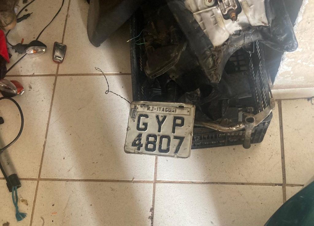 A Polícia Militar flagrou o suspeito desmontando a moto e subindo em outra para fugir e deixar o local. Segundo as primeiras informações, uma das motos possuía registro de roubo e com o suspeito foram apreendidas peças da moto desmontada.
