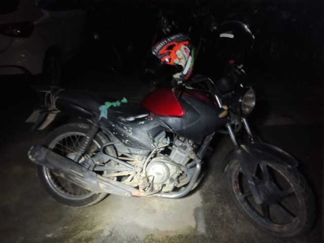 O dono da motocicleta, de 43 anos, disse aos policiais que a Yamaha YBR 125 estava na garagem. O flagrante ocorreu próximo da casa dele. (Foto: Polícia Militar)