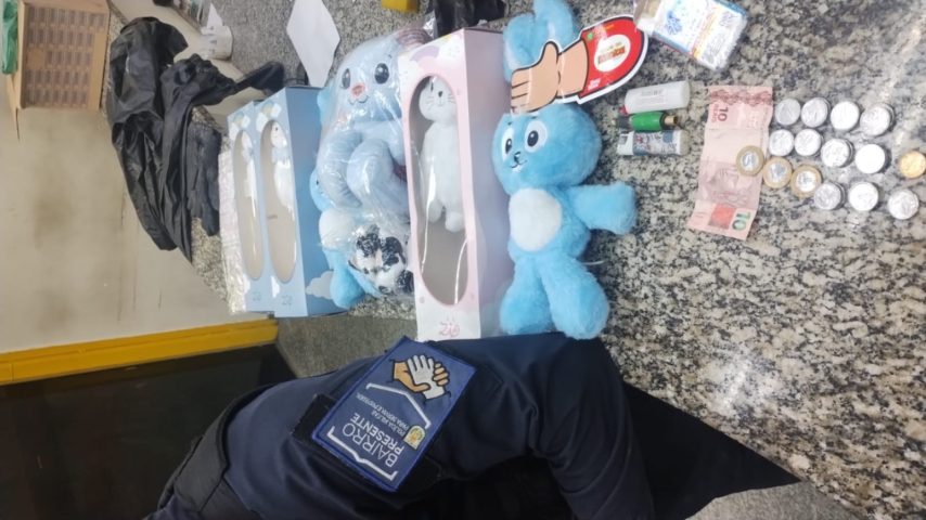 De acordo com a PM, ele entrou pela janela e tentou deixar o local com sete ursos de pelúcia, um kit de cesta de páscoa um par de luvas e um kit de capa de chuva para motociclista. O material foi encontrado no corredor de acesso a loja. A PM informou que uma equipe foi até o local após uma denúncia.