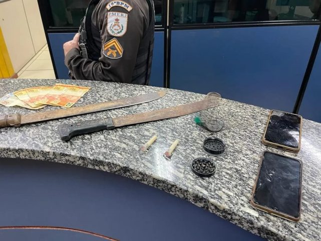 A PM obteve informações sobre a localização do suspeito, que, segundo os agentes, continuava enviando mensagens com ameaças e ligando para a ex-companheira enquanto já estava sendo procurado. Quando percebeu a chegada da polícia, ele tentou fugir. No interior da residência dele, os policiais apreenderam dois pinos de cocaína, a câmera de monitoramento através da qual ele percebeu a movimentação policial, dois facões, fita adesiva e R$ 150 em espécie, além de um dichavador – usado para triturar maconha.