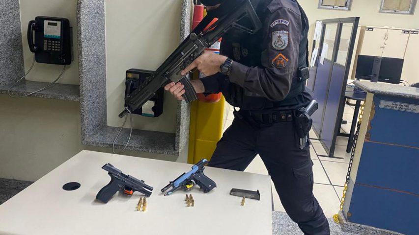 Após varredura, os policiais encontraram duas pistolas: uma calibre .40 e outra 9 milímetros. Doze munições foram apreendidas. Em seguida, os agentes receberam informação de que um jovem deu entrada no Hospital de Porto Real baleado. Os agentes foram à unidade médica e encontraram um carregador de pistola com duas munições em seu bolso.