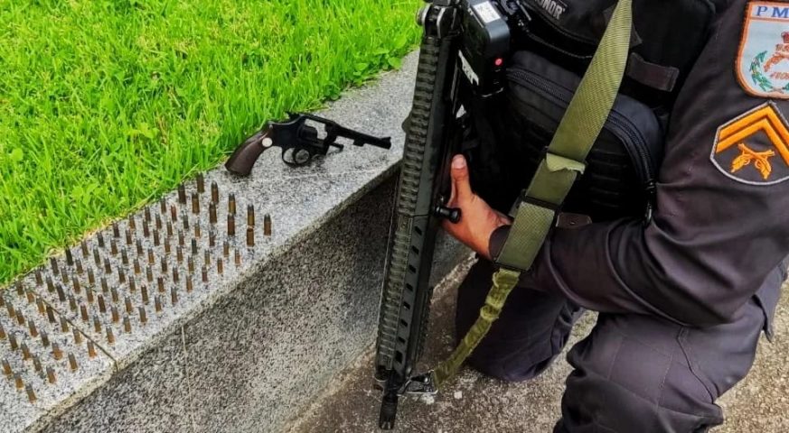 Segundo a Polícia Militar, os agentes receberam uma denúncia de que circulava vídeos nas redes sociais de um homem portando arma de fogo no quintal da sua residência. Os policiais foram até o local de trabalho do homem, onde o encontraram e informaram sobre a denúncia.