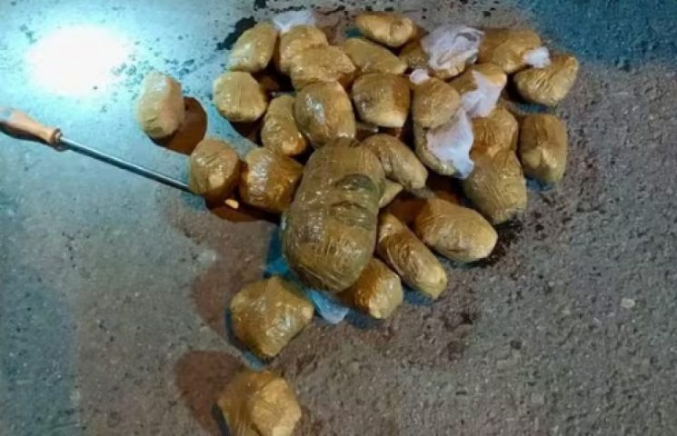 Segundo a Polícia Rodoviária Federal, pequenas sacolas com fita adesiva contendo a droga foram encontradas dentro do estepe. No total, foram apreendidos 2,8 kg da droga.