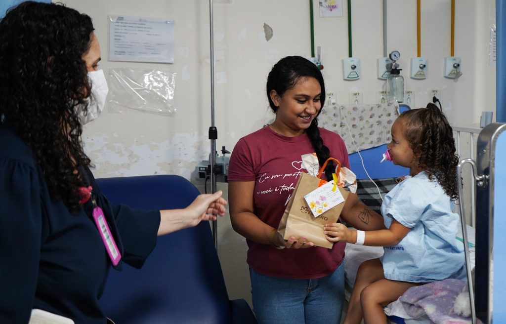 “Sabemos que uma singela homenagem ou uma pequena festa reflete na melhoria do quadro de saúde do paciente e entendemos que é importante este trabalho de acolhimento das famílias no leito”, afirmou a diretora do hospital, Márcia Cury. (Fotos: Divulgação / Geraldo Henrique)