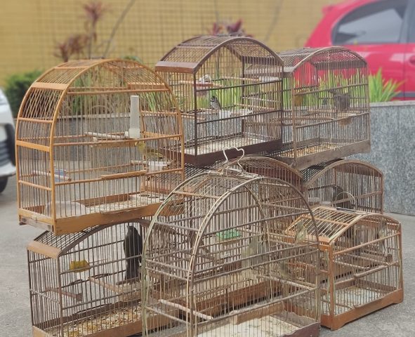 Treze pássaros da fauna silvestre brasileira foram resgatados de cativeiro nesta terça-feira (29), em Mendes, a partir de uma informação recebida pelo programa Linha Verde, do Disque Denúncia (0300 253 1177). Agentes lotados na Unidade de Policiamento Ambiental do Parque Estadual da Serra da Concórdia, subordinados ao Comando de Polícia Ambiental, estiveram em uma residência localizada na Estrada Paraíso, bairro Jabuticabeira, onde, após autorização do morador, sobrinho do denunciado, foram encontrados oito coleiros, três trinca-ferros, um tico-tico e um canário da terra, todos sem anilhas de identificação junto aos órgãos competentes.