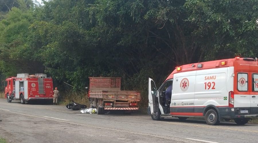 Motociclista morre em acidente com caminhão na RJ-121, em Vassouras
