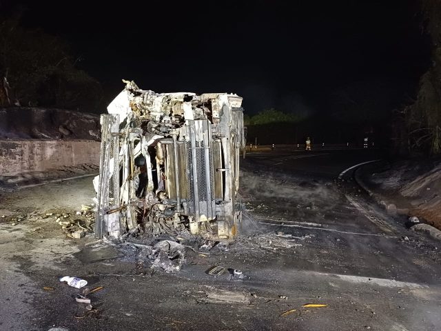 A ocorrência mobilizou bombeiros de Campos Elíseos (RJ), Paracambi e Piraí. O fogo, segundo os militares, se espalhou para a vegetação. O caminhão transportava 45 mil litros de etanol. No momento desta publicação, a pista sentido Rio estava totalmente interditada, com um enorme congestionamento sendo registrado, de mais de 10 quilômetros. A pista sentido São Paulo (subida), está sendo usada como mão dupla. (Foto: PRF)