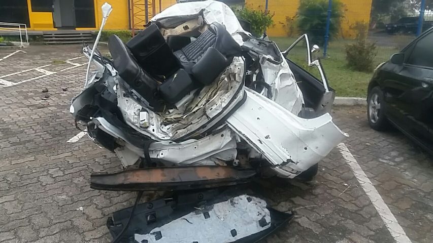 Chegando ao local, os policiais apuraram que um Volkswagen Jetta, com placas de Ribeirão Preto/SP, havia saído da pista. No local foi verificado – através de vestígios deixados – que o condutor perdeu o controle do veículo após fazer uma curva em alta velocidade, vindo a chocar-se contra a defensa metálica da pista. O carro chegou a “decolar”, atravessando a defensa metálica, saíndo da pista e caindo em uma ribanceira.