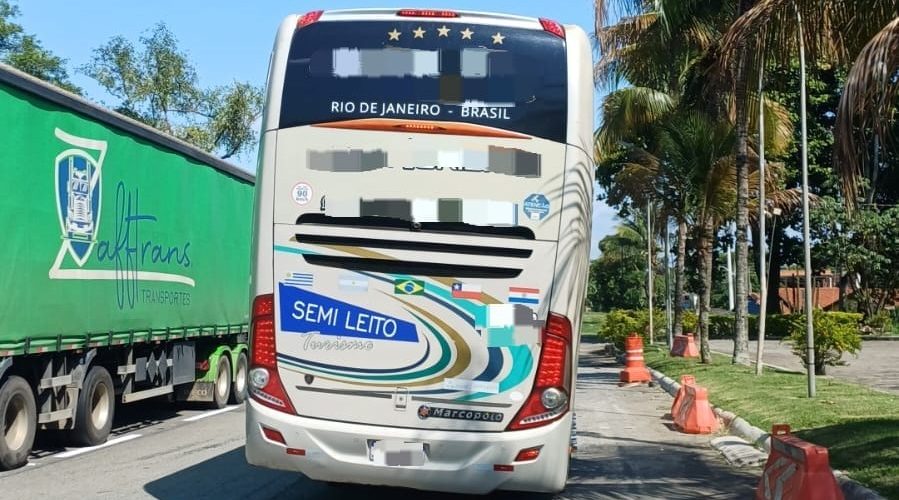 Ônibus com 43 idosos e com risco de tombamento é flagrado na Dutra, em Barra Mansa