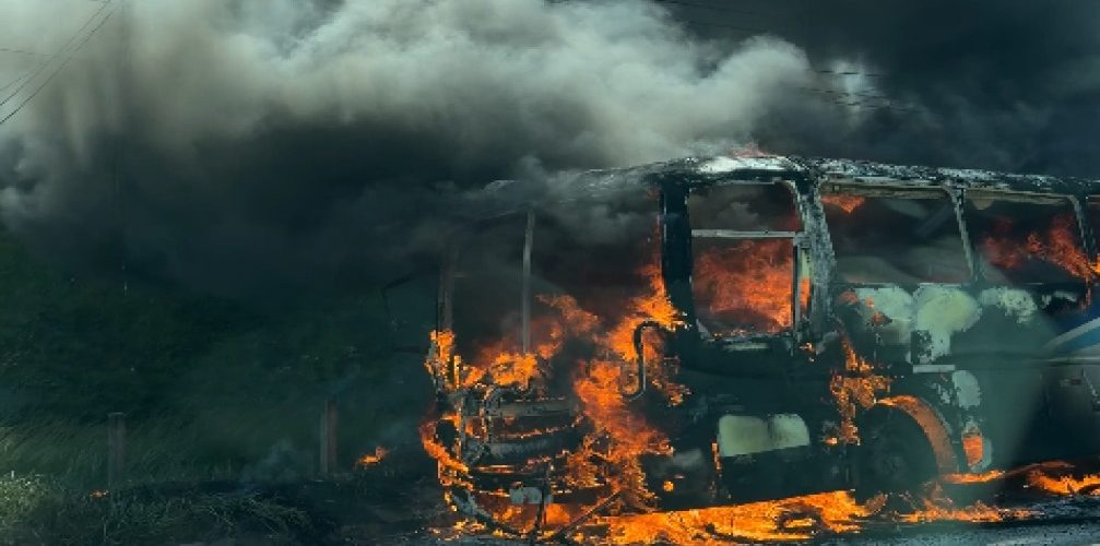 Ônibus pega fogo na Rodovia dos Metalúrgicos, em Volta Redonda