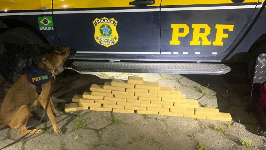 Policiais rodoviários federais, em conjunto com o Núcleo de Operações com cães – NK9, apreenderam 37 tabletes de maconha, dentro de uma mala no bagageiro de um ônibus, na Via Dutra, em Piraí. Um homem foi preso.
