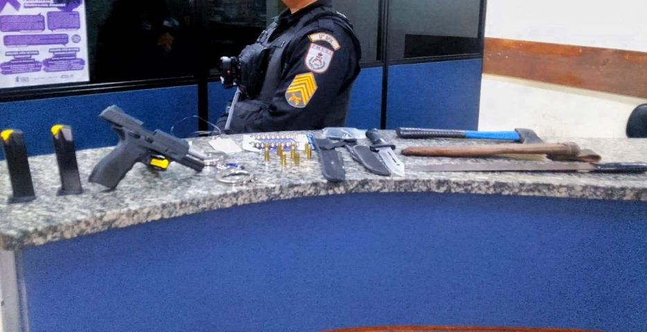 Uma pistola calibre 9mm em poder de um vigilante de 55 anos foi apreendida pela Polícia Militar, na noite da quarta-feira (10), em Barra do Piraí, depois da denúncia de uma suposta ameaça feita por uma sobrinha dele, de 24 anos. Além da arma, foram apreendidos três carregadores, 30 munições, uma faca, um facão e uma machadinha, além de uma mira e um par de algemas.