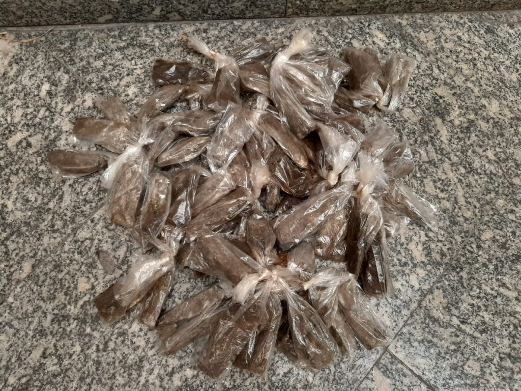 Policiais militares apreenderam 95 sacolés com tiras de maconha, no Minha Casa Minha Vida do bairro Três Poços. Os agentes chegaram ao local onde havia denúncia de disparos de arma de fogo, quando depararam com suspeitos nas proximidades da linha férrea.