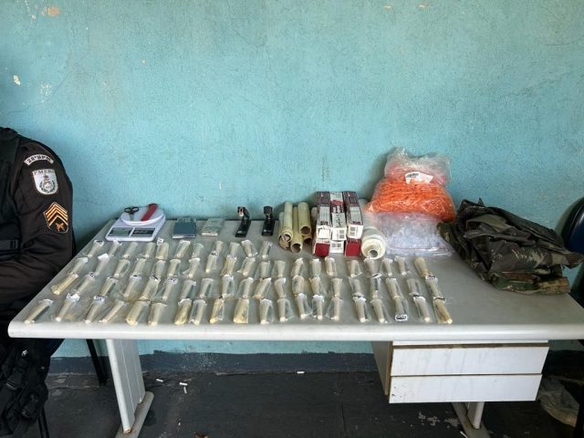 Os agentes foram ao local após receberem informações de tráfico. Chegando, os traficantes correram para uma área de mata e deixaram para trás 72 tubos grandes da droga, três balanças de precisão, dois grampeadores, mil tubos vazios e uma farda do Exército. O material foi levado para a delegacia, onde a ocorrência foi registrada.