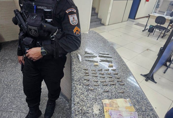 Um suspeito de tráfico foi detido na noite do domingo (6) no bairro Água Limpa, em Volta Redonda, por uma equipe da Polícia Militar que fazia patrulhamento pela Rua Visconde do Rio Branco. Ele foi encontrado próximo a uma pracinha e, segundo os policiais, tentou esconder uma sacola com entorpecentes ao perceber a aproximação da viatura.