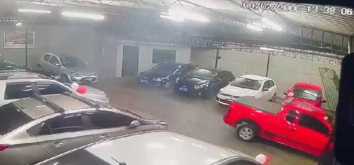 O furto foi registrado por uma câmera de segurança. Para levar o veículo, o ladrão – vestindo uma blusa com capuz cobrindo a cabeça – usou a própria picape para derrubar o portão do estabelecimento, que fica na Rua Ari Fontenelle. Antes, ele tentou remover a tranca, mas não conseguiu. Diante da dificuldade, o criminoso usou o veículo para forçar o portão até conseguir sair da agência.
