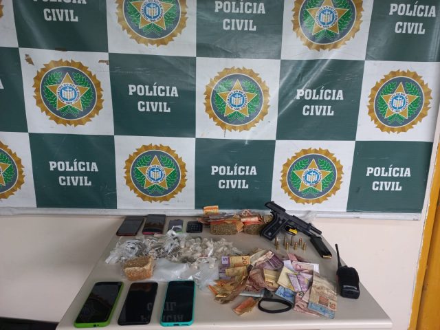 Diante das informações prestadas pelo rapaz, a equipe seguiu para outra casa, onde prendeu um homem de 33 anos, cuja função no tráfico seria de guardar armas e drogas para uma facção criminosa. Os agentes apreenderam drogas, material para embalar entorpecentes, uma balança digital e uma pistola calibre 9 milímetros com carregador.