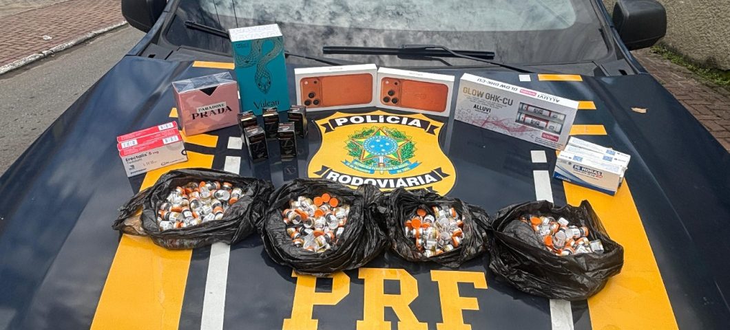 A Polícia Rodoviária Federal apreendeu, na manhã desta quinta-feira (12), medicamentos proibidos e mercadorias de origem estrangeira sem a devida comprovação fiscal, na Via Dutra, em Itatiaia. A apreensão ocorreu no km 324 da pista sentido Rio de Janeiro. Um homem de 51 anos e seu filho, de 25, foram conduzidos à Delegacia de Polícia Federal em Volta Redonda e devem responder por contrabando e descaminho.