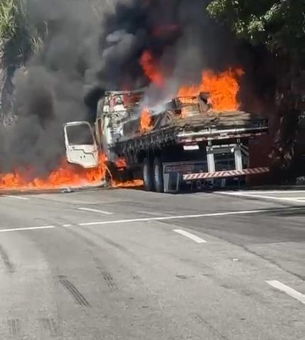 Segundo a PRF, a vegetação às margens da pista também foi atingida pelas chamas, o que agrava a situação. Vídeos que circulam nas redes sociais mostram o caminhão em chamas, com a pista completamente interditada e motoristas fora dos veículos.
